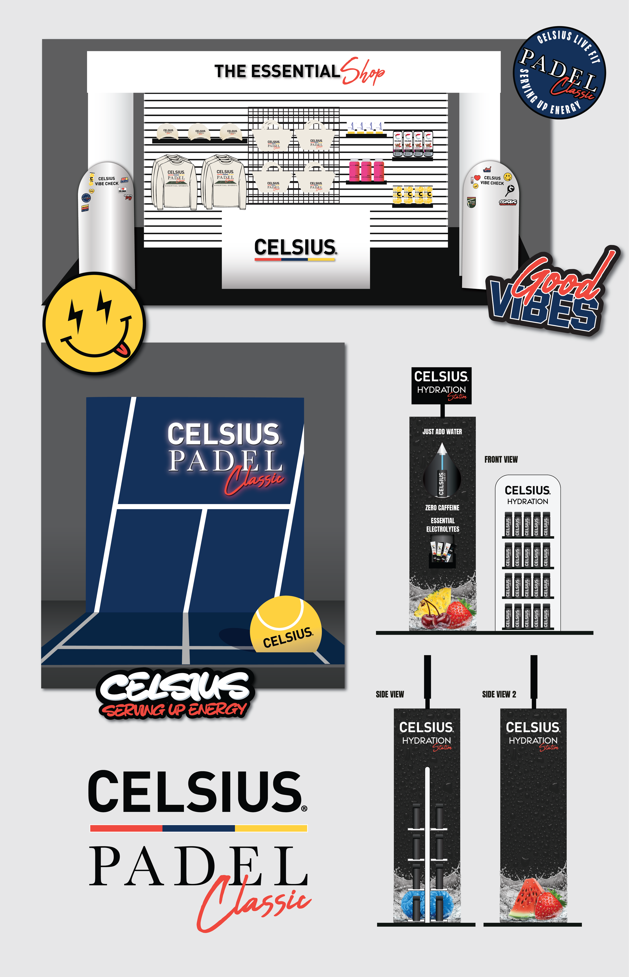 Bringing this activation to life during Art Basel Week in Miami, the focus celebrated the energy of sport, art and giving back. Centered around a padel-themed competition at the yearly classic event, the activation transforms the space from concept to reality with an immersive, premium experience with striking visual elements that echo both the artistry of Art Basel and the high-energy vibe of CELSIUS. Supporting collateral–from merchandise and limited-edition apparel to branded hydration and signage–crafted with an artistic, premium touch, turning every detail into a statement piece. Beyond aesthetics, the activation champions impact; blending sport and style in a way that elevates the experience for participants and spectators alike.